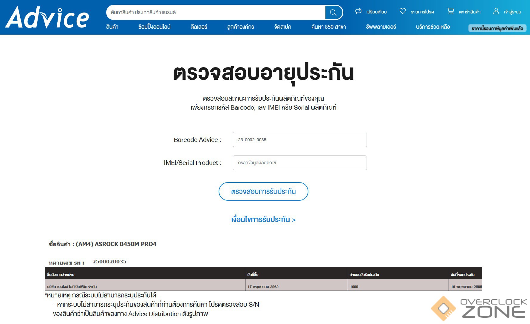 ใบรับประกัน Asrock B450 Pro4